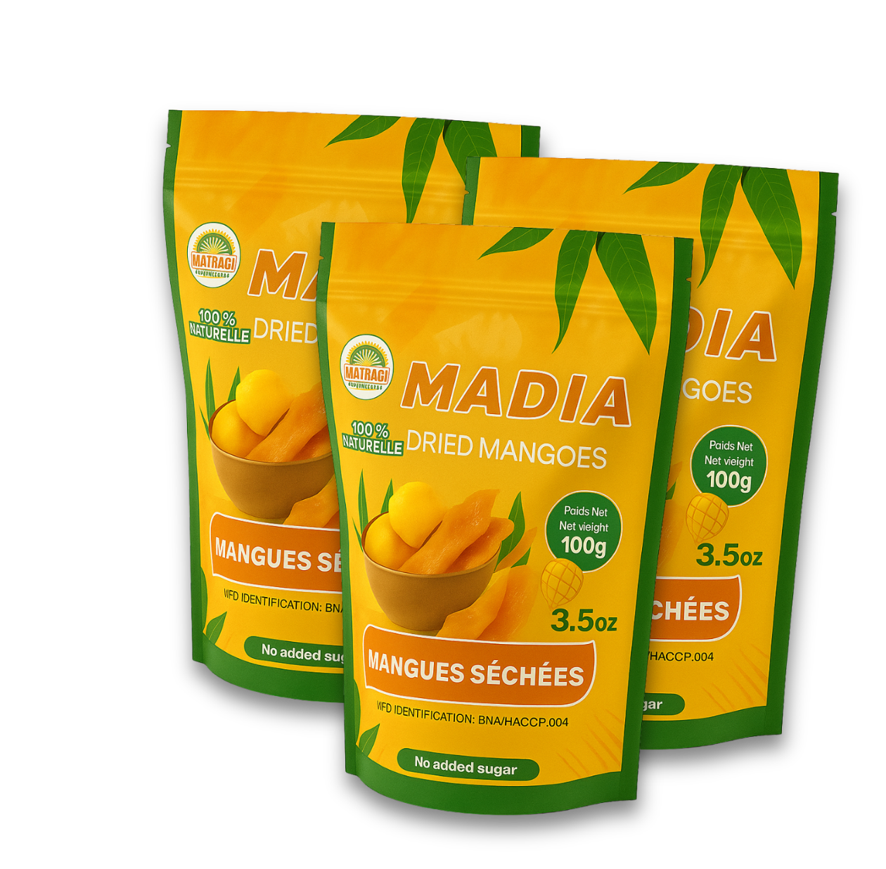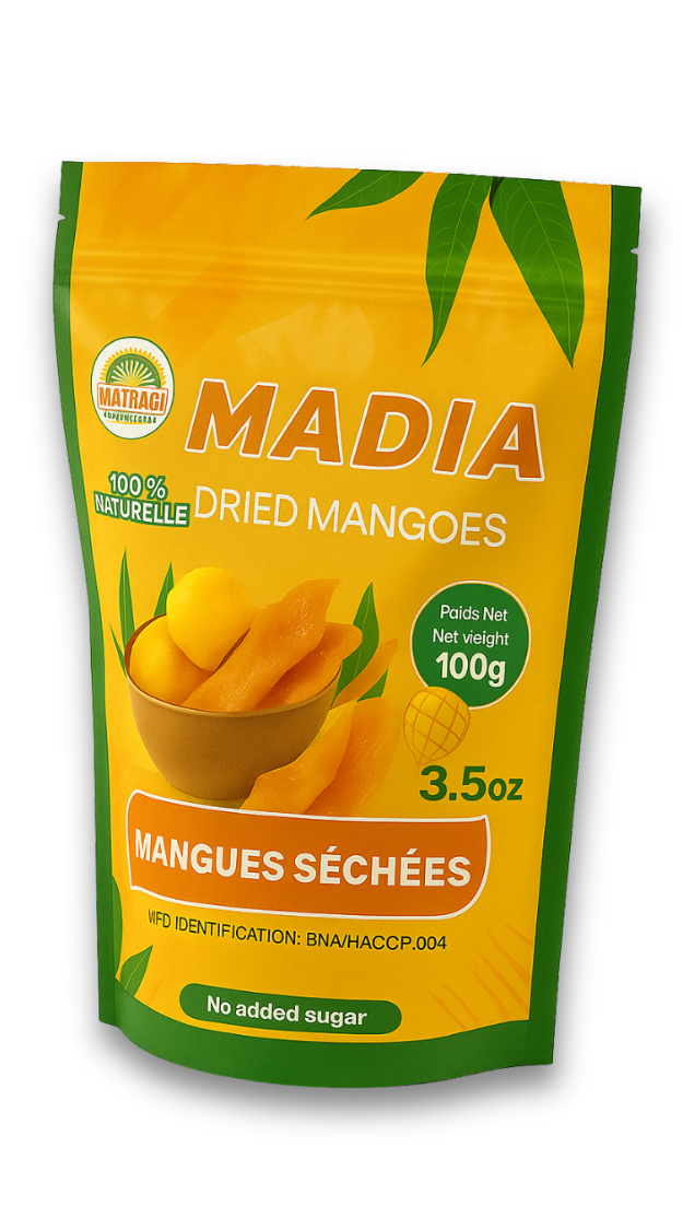 nous valorisons le meilleur de notre terre pour répondre aux exigences du marché international. Notre produit phare : la mangue séchée, sélectionnée à pleine maturité, douce, naturelle, sans sucre ajouté.